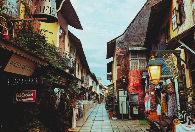 נחיתה בקוצ'ין בשעות הבוקר ומעבר למלון במרכז העיר (Fort Kochi ). הגעה למרכז העיר, קבלת חדרים, ומנוחה קלה. ארוחת בוקר מאוחרת, קבלת אופניים ויציאה לסיור רכוב קצר בעיר. מרכז העיר משופע בסמטאות קטנות, חנויות תבלינים, אומנות וסוחרים מקומיים מרהיבים.